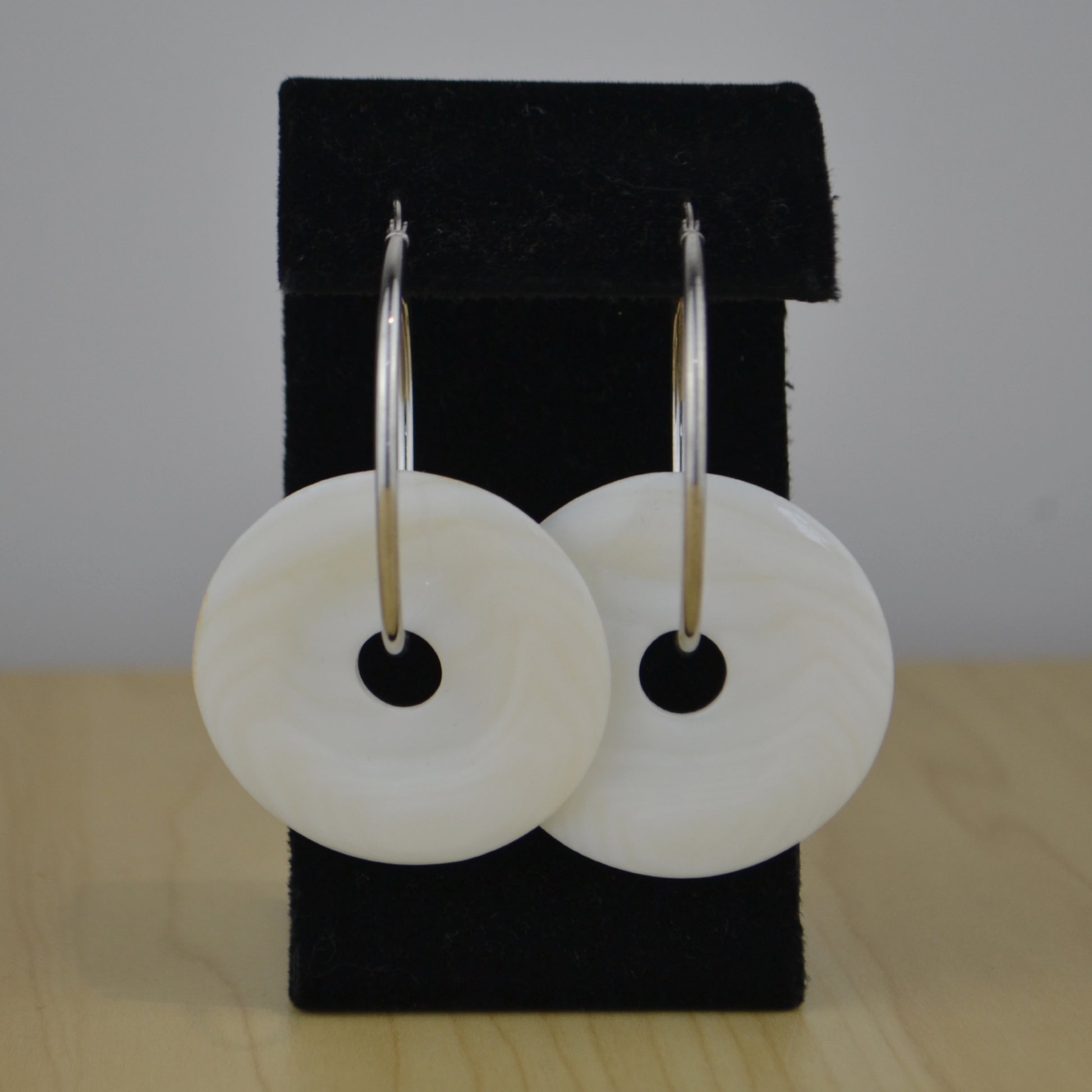 Sterling Silver Sleeper Hoops with Mother of Pearl Donuts